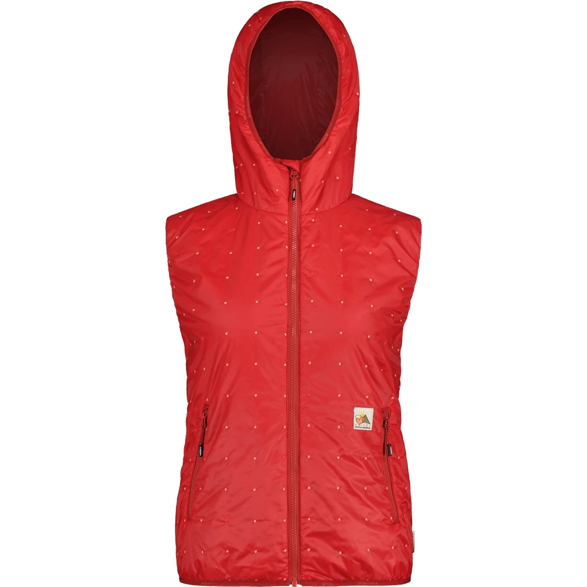 The insulation vest is warm, lightweight, small packable and thus the perfect companion for all activities in nature or in the city. Primaloft BIO padding is fixed to the outer material with embroidered dots in different colors, Superfine nylon is windproof and has a PFC-free water repellent finish. Woven Mountain People label on the front.