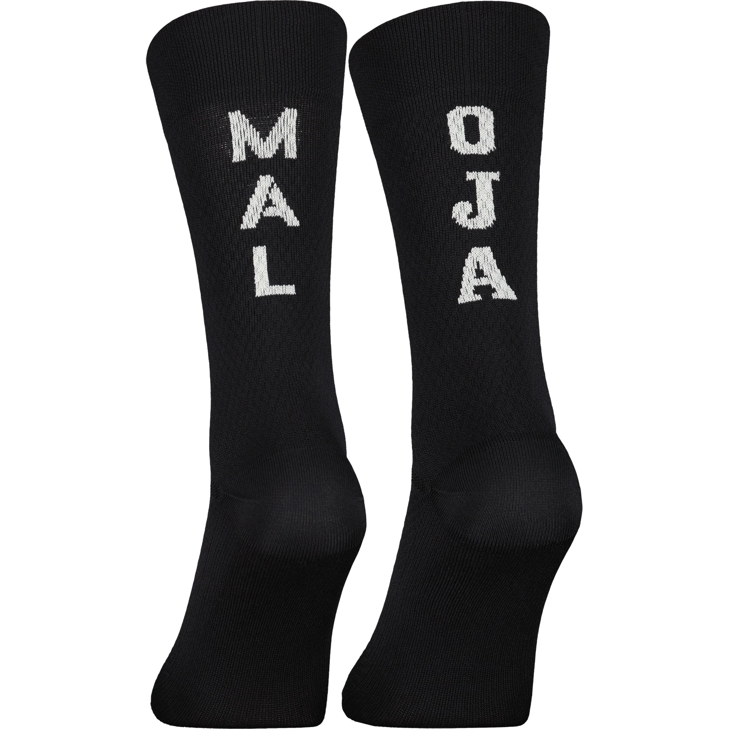 Quick-drying sports socks in modern length with split Maloja lettering.