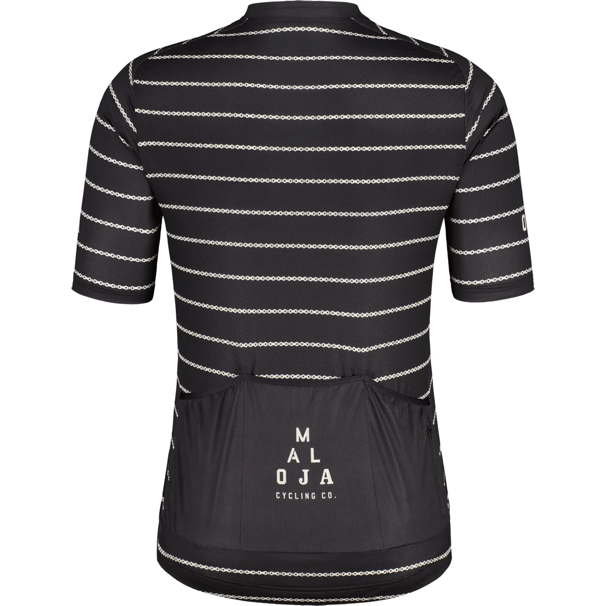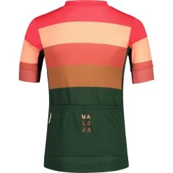 Road bike jersey with a tight cut and mesh inserts on the sleeves and side panels for good ventilation. Three back pockets and an additional mobile phone pocket with zipper. Classic striped design, triangular Maloja lettering on the sleeves and back pocket, mountain patch on the chest. Equipped with Polygiene StayFreshâ„¢ technology, the growth of odor-causing bacteria in the jersey is inhibited. So it stays fresh longer and must be washed less often. This saves water, energy and time – and extends the product’s lifetime.
