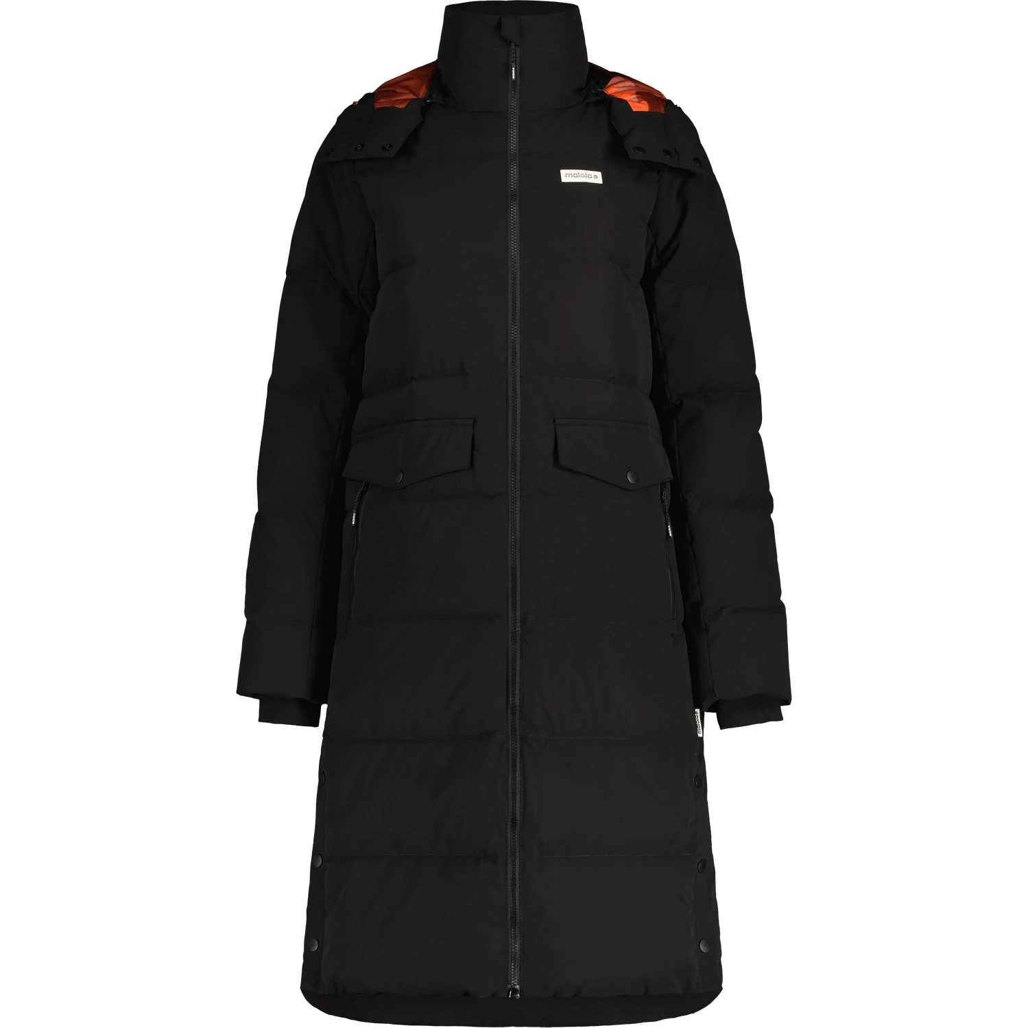 Very warm, long cut coat with filling from recycled down. The Stormshell outer material is windproof and has a PFC-free water repellent finish. Detachable hood, two-way zipper, side slits with snaps for more freedom of movement, two side zipper pockets, above two pockets with snap flaps.