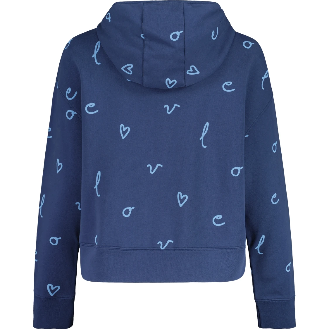 Comfortable organic cotton hoodie with a modern fit. All-over print inspired by alpine flowers or VELO LOVE letters.