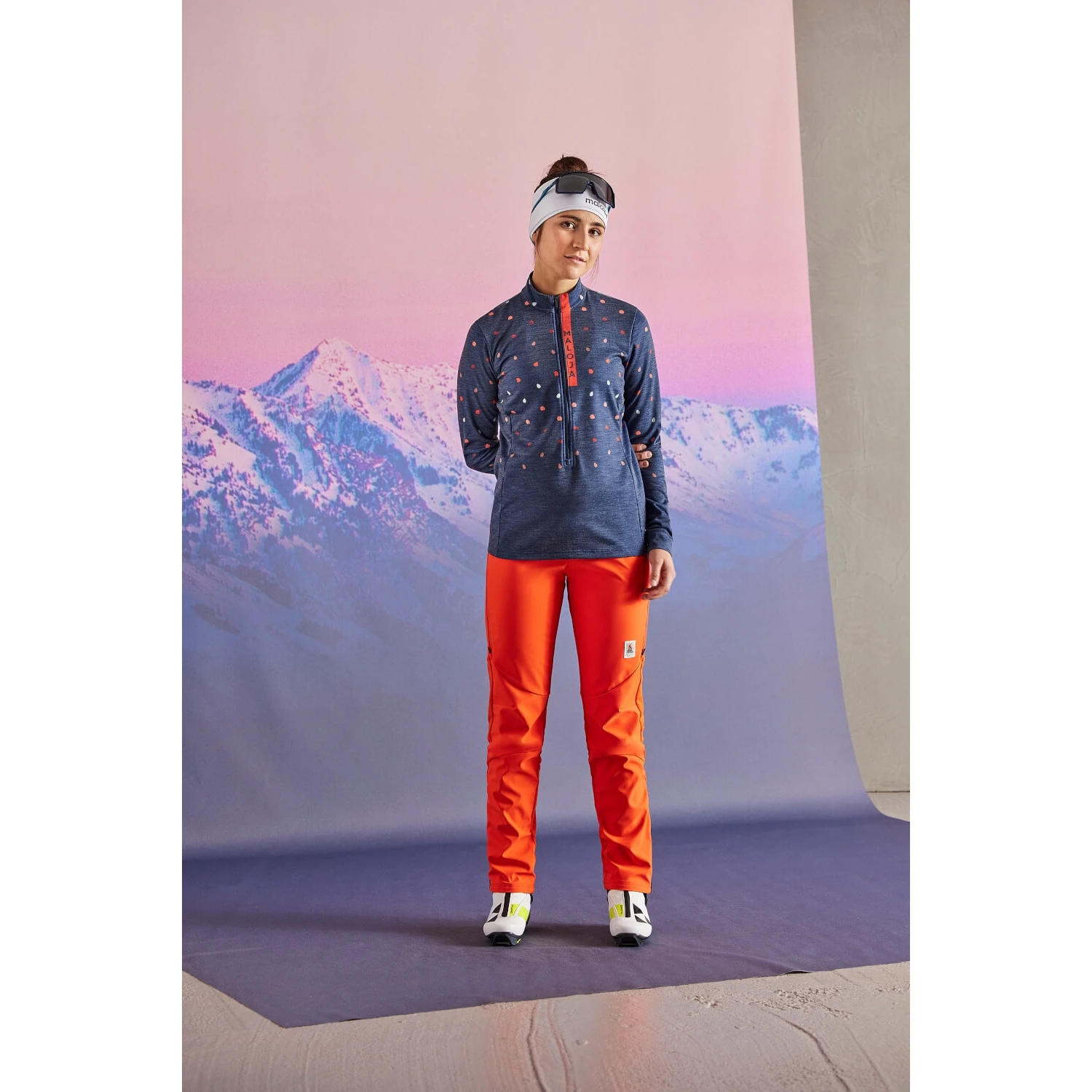 The elastic, quick-drying Thermopile Merino material is the ideal mid-layer for all outdoor adventures. Graphic Maloja lettering next to the front zipper and Happy Mountain woven label.
