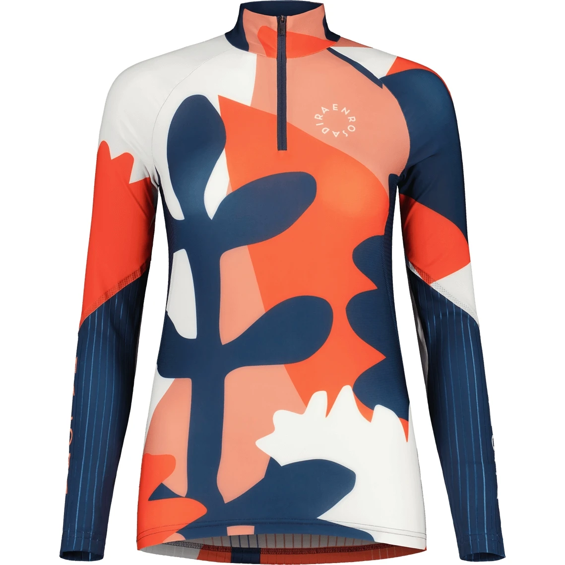 - Maloja lettering on the forearms and round Enrosadira logo on the chest