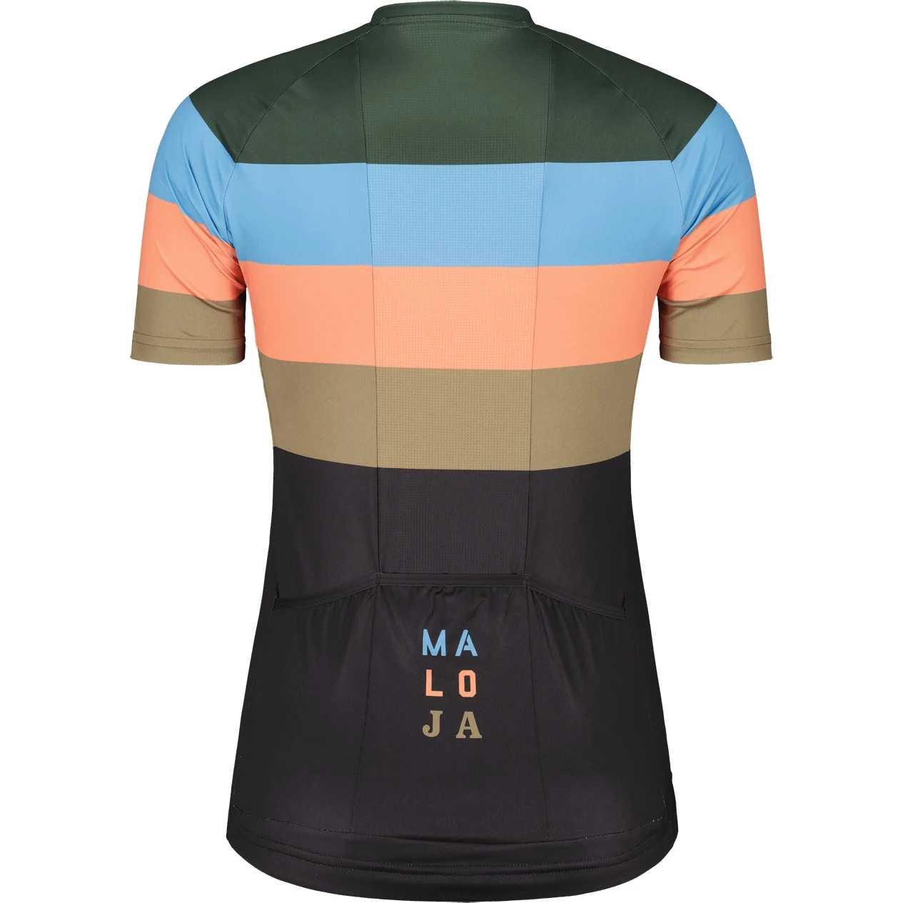 The athletically cut jersey provides particularly good ventilation on hot days thanks to the mesh center panel on the back. With its three back pockets, stand-up collar and full-length front zip, it is a classic jersey, optionally in a modern color block or with all-over dot prints and simple Maloja lettering.