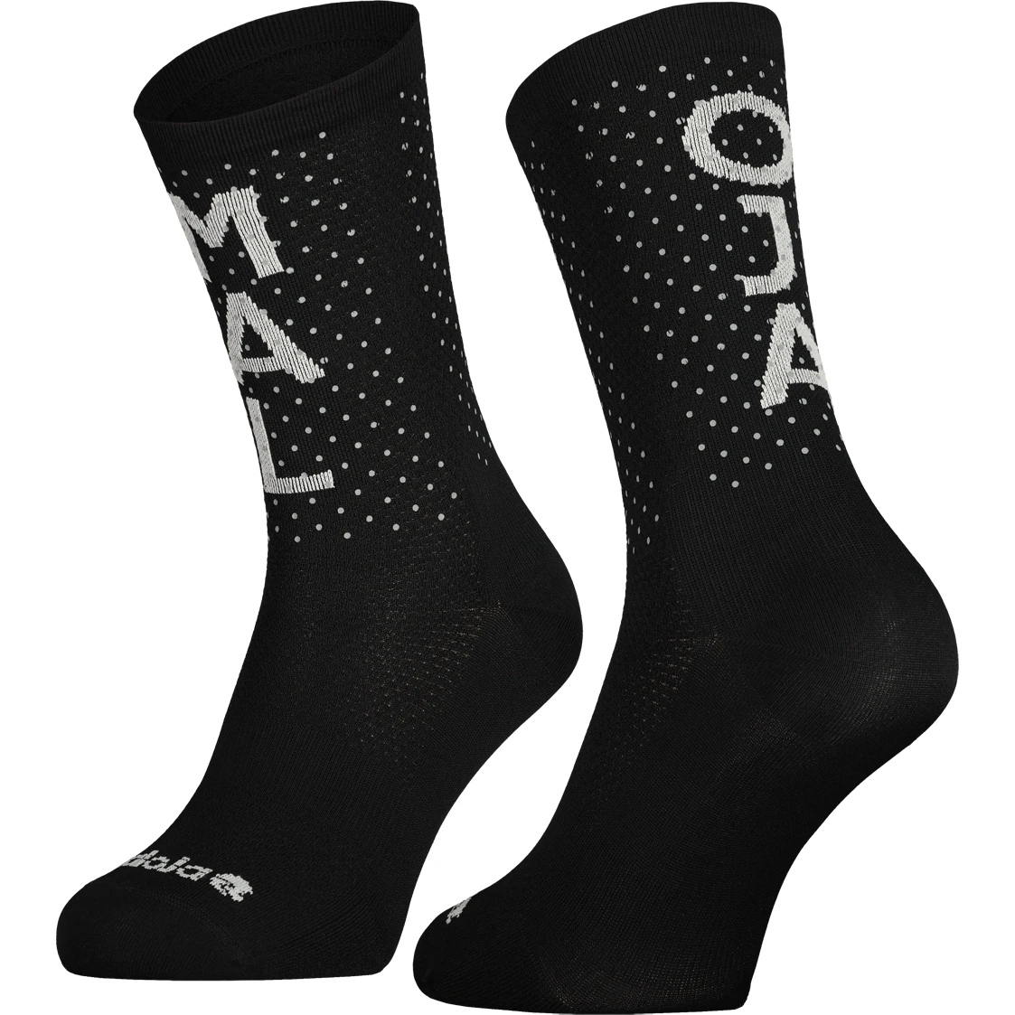 Quick-drying sports socks in modern length with split Maloja lettering and reflective dots.