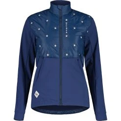 Front and back are decorated with embroidered stars that fix the padding. Horizontal Maloja lettering next to the front zipper, Glide and Ride patch above the waistband right front.