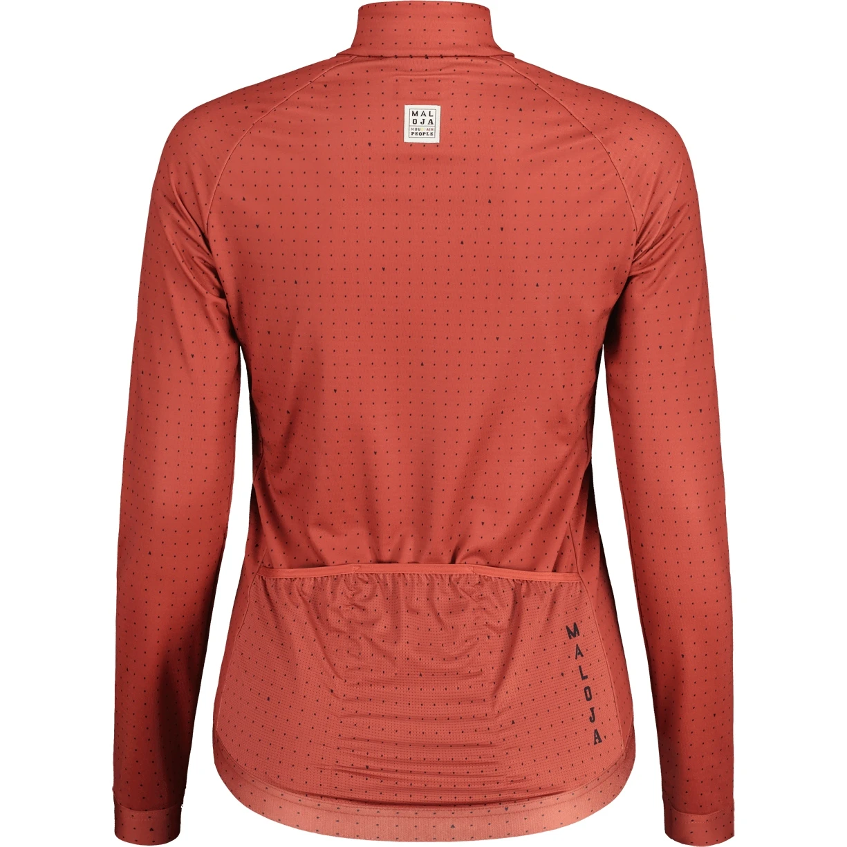 With the material that is roughened on the inside, the high collar and well-closing sleeve cuffs, the narrow-cut SandlingM. 1/1 ideal for cooler days on the road bike. Three back pockets offer plenty of storage space, mesh on the back and under the arms ensure good ventilation. Allover dotgrid print with square Maloja lettering on the back and Maloja Mountain lettering on the chest.