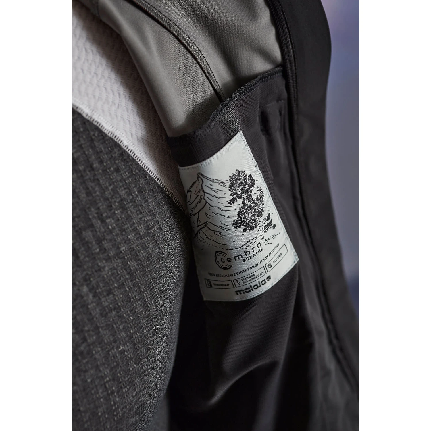 : cembra® BREATHE is part of the Maloja weather protection series. Our most breathable, stretchy shell for strenuous activities like cross-country skiing, ski touring or biking. Thanks to the innovative membrane technology with fiber-based mesh structure, cembra ®BREATHE combines outstanding moisture management (30% more moisture transport than comparable 3-layer products) with maximum wind protection. All cembra® products are equipped with an environmentally friendly, permanently water-repellent PFC-free impregnation.
