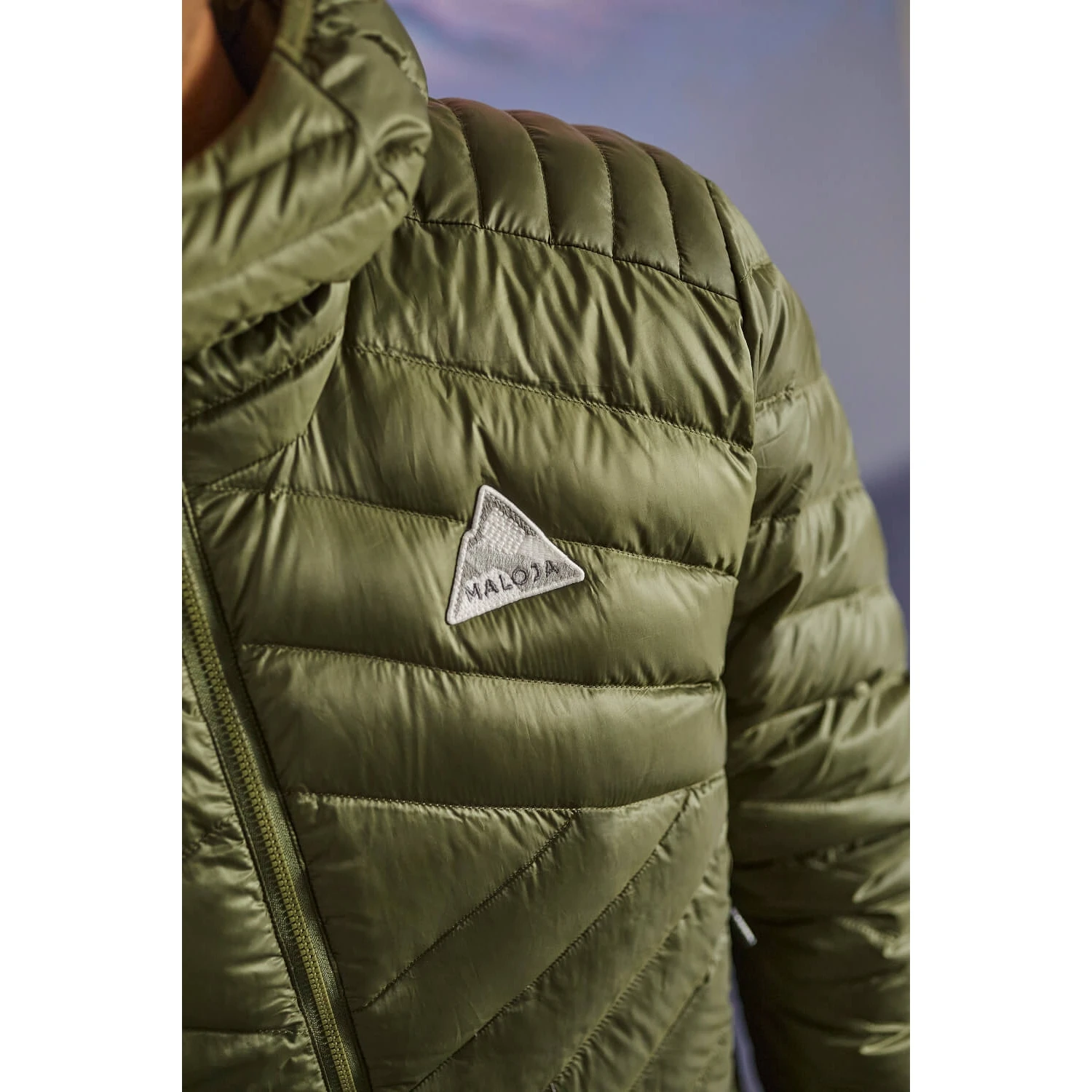 With its 700-fill made from recycled down, this lightweight insulation jacket guarantees cozy warmth and, with its graphic quilting, is suitable for use on the mountain as well as in the city. For transport, SteinbockM. can be packed small in the integrated pocket, due to the cut also ideal as an insulation layer under a shell. Maloja Mountain patch on the chest.