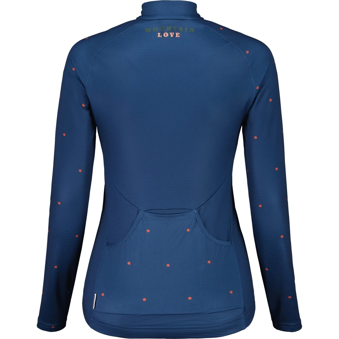 The elastic, quick-drying fleece material from GanesM. 1/1 ensures good comfort on cooler days, with the body-hugging cut, full-length front zip and three back pockets ideal for sporty bikers, road cyclists and gravel bikers. Featuring a floral floral graphic on the chest and dot prints on the sleeves.