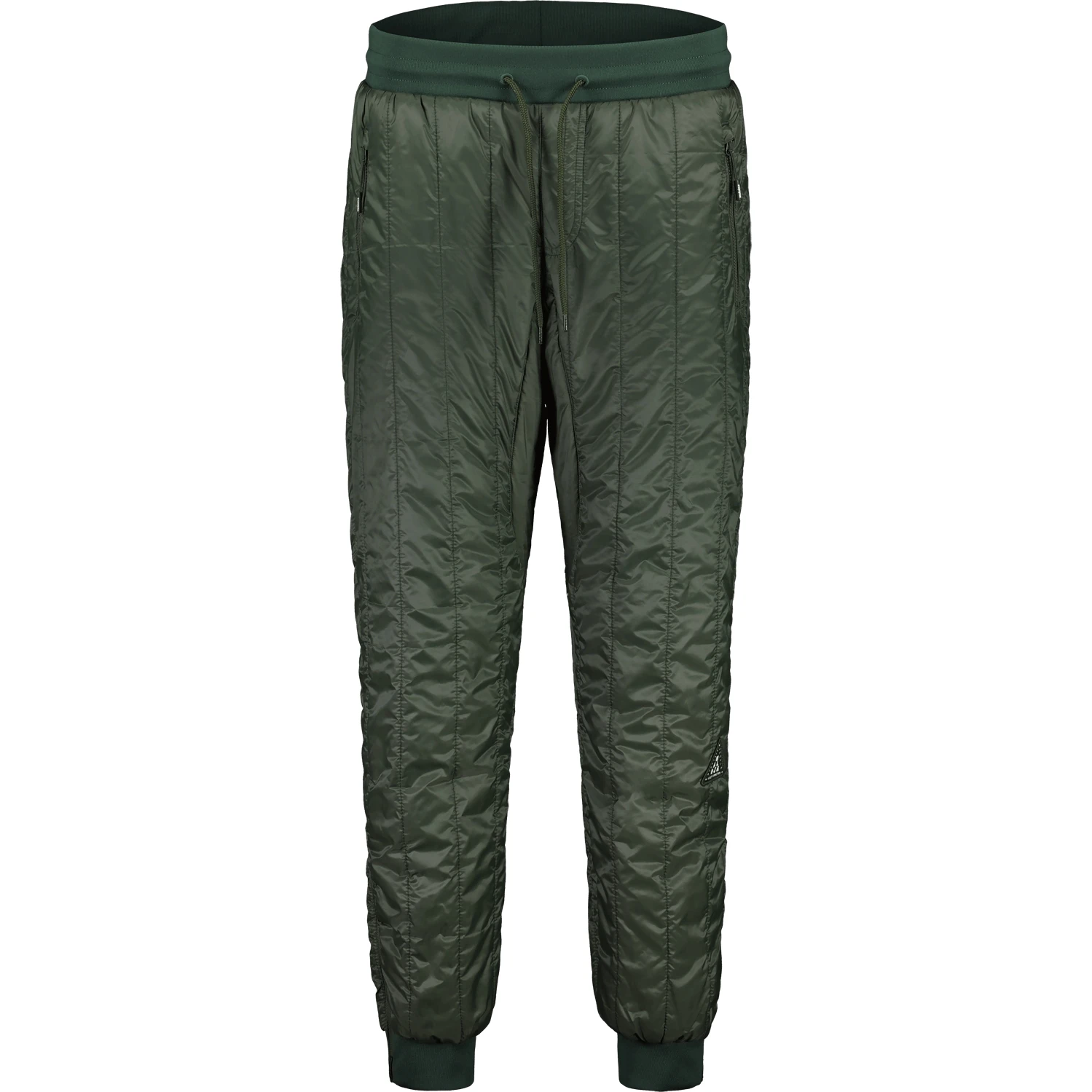 Insulation pants for cold days with warming Primaloft BIO padding and new vertical quilting pattern. Leg cuffs with ribbed cuffs and zippers to put the pants on and off even with ski or hiking boots. Two side entry pockets with zippers, two back patch pockets. Maloja patch on the left knee.