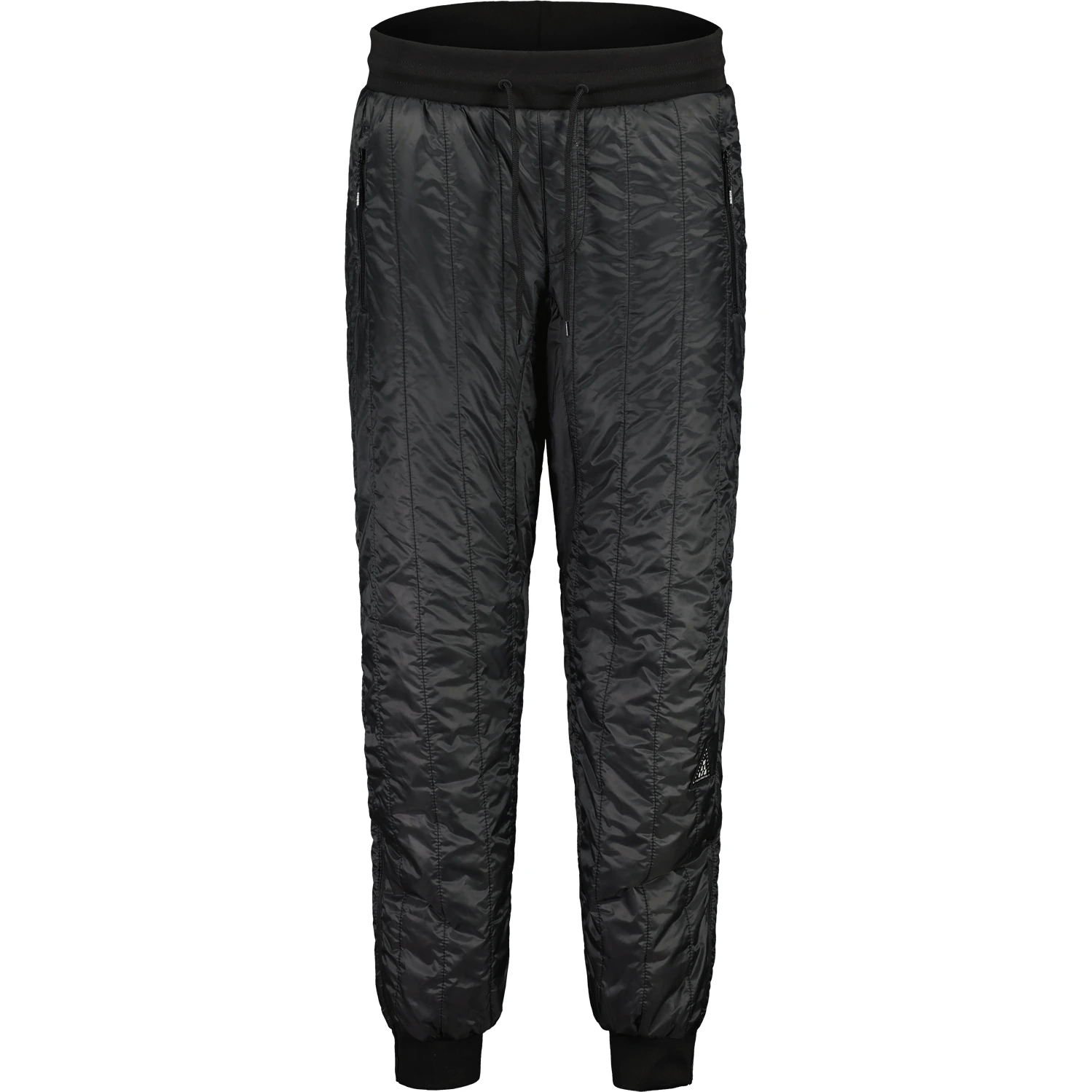 Insulation pants for cold days with warming Primaloft BIO padding and new vertical quilting pattern. Leg cuffs with ribbed cuffs and zippers to put the pants on and off even with ski or hiking boots. Two side entry pockets with zippers, two back patch pockets. Maloja patch on the left knee.